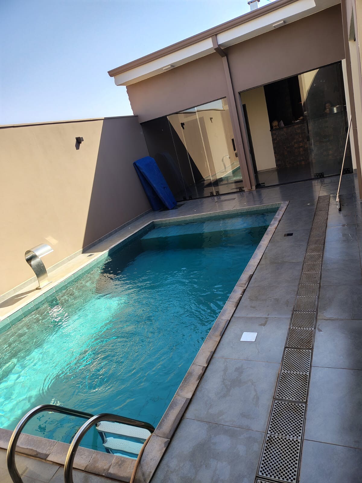 Área de lazer -1 churrasqueira -1 geladeira -1 mesa c/ 8 cadeiras -1 banheiro exclusivo -1 piscina c/ cascata -1 ducha fria Cozinha -1 frigobar -1 fogão 4 bocas -1 air fryer -1 pulverizador de água -1 utensílios p/ cozinha Sala -1 Tv 42” -1 sofá (pode atender c/ cama) Quarto 1 -1 cama de casal -1 cama de solteiro -1 cabideiro -1 mesa de centro - Ventilador de teto Quarto 2 -2 beliche (p/ 2 pessoas) -1 cama de solteiro - Ventilador de teto -Garagem p/ 3 carros - Wi-Fi