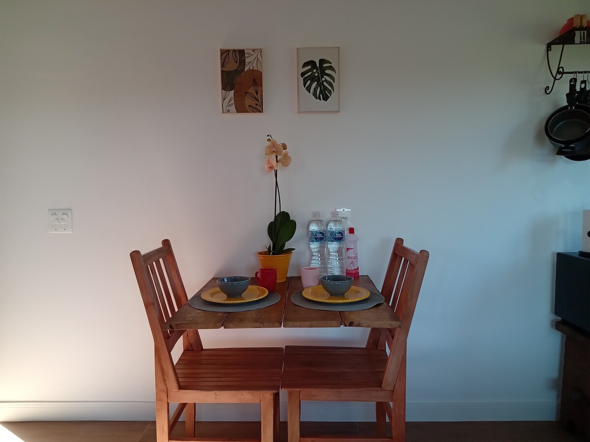 In the morning, we hear the birds, escaping the hustle and bustle of the center, with few houses, lots of trees and a family atmosphere. The house is made in Maçaranduba, and masonry, a wood that brings the rustic with a very clean decoration, bringing lightness and peace to the environment, with 2 bedrooms being an en-suite, 1 social bathroom, kitchen, dining room and combined TV room. There are many trees on the site, it is not far from the center, 3.5 km, paved access, with 100 meters of dirt road, there are 4 cottages on the site.