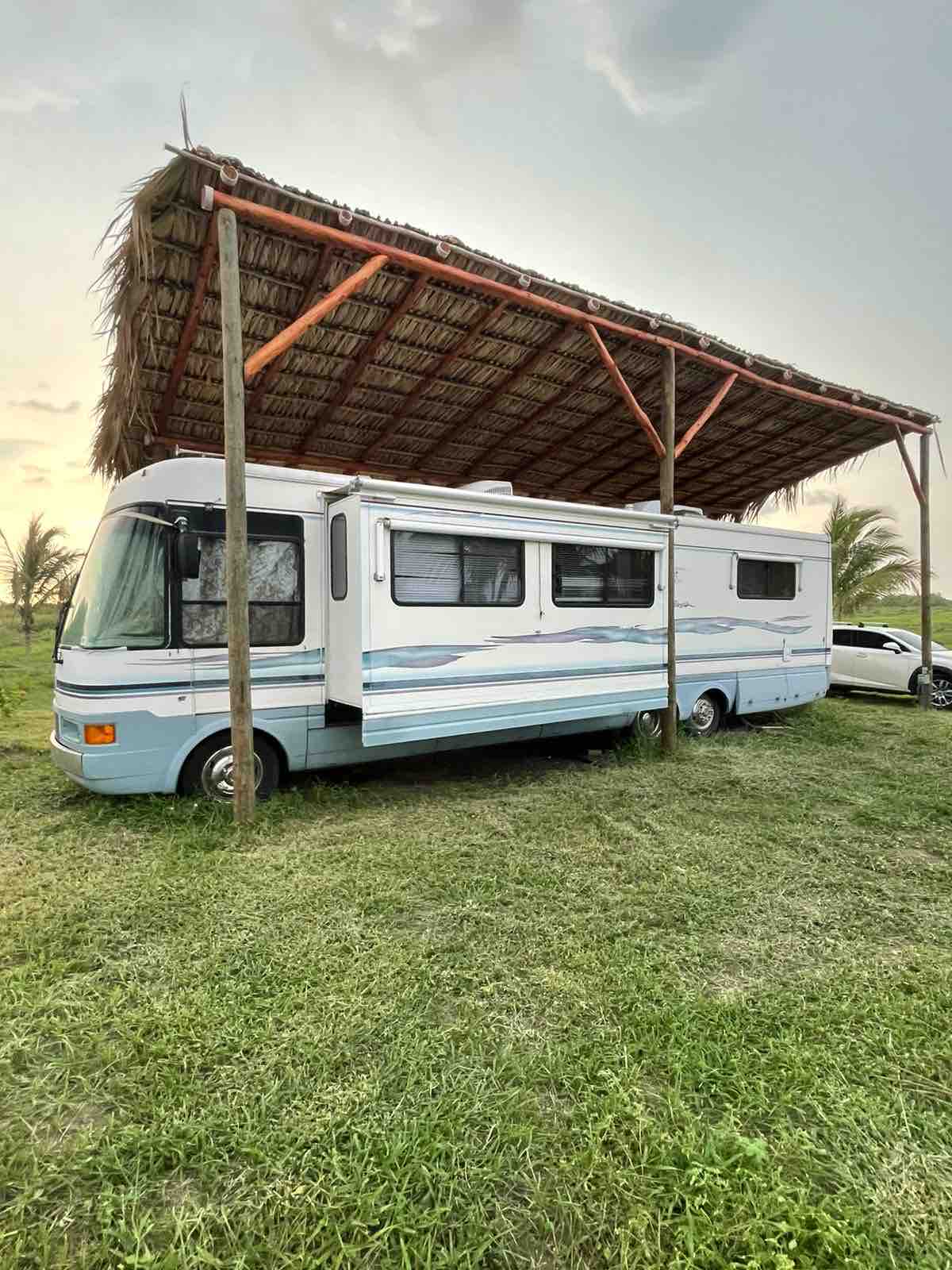 Enjoy your beach getaway at The Residency, a classic, 36 foot RV nestled under a thatch roof just a few meters from the beach. She has all the vintage feels and comforts for a unique experience! The Residency sits at the end of the RV park at the Playa 14 for extra privacy. Your stay includes a *1* day-pass for each guest to Playa 14 which includes 3 pools, restaurants, bars, beach and is kid-friendly. Located just a few minutes drive to the town of El Paredon.