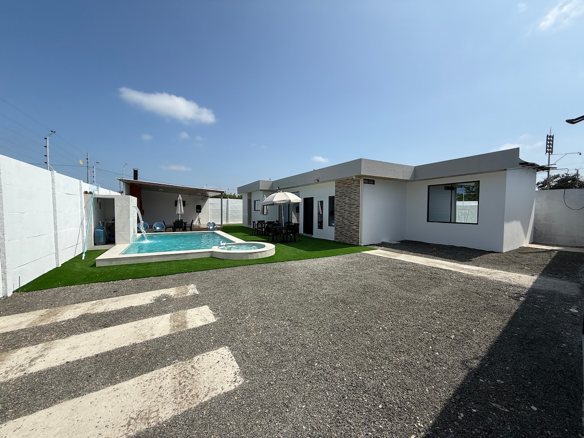Luxury modern ✨ house in private development, close to Samborondon malls. Equipped full with 3 bedrooms, 3 bathrooms, elegant living room, dining room, full kitchen, giant Sony TV and remote working space with wifi. Secure urbanization with adult and children's pool, multiple court, ping pong, foosball and green areas. Great for families, groups and executives looking for comfort and exclusivity near Samborondon and Guayaquil