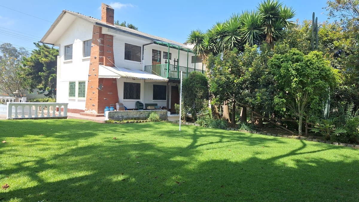 Enjoy our private and exclusive country house for your group, located just 1 hour from Quito, 25 minutes from the airport, in a cozy, safe and private atmosphere. WE HAVE AN ELECTRIC GENERATOR. 6 comfortable rooms, equipped kitchen and everything you need to relax in our pool - jacuzzi (with temperature up to 40°), surrounded by nature. Walk through our beautiful gardens, have fun on our natural grass court and prepare a delicious barbecue.
