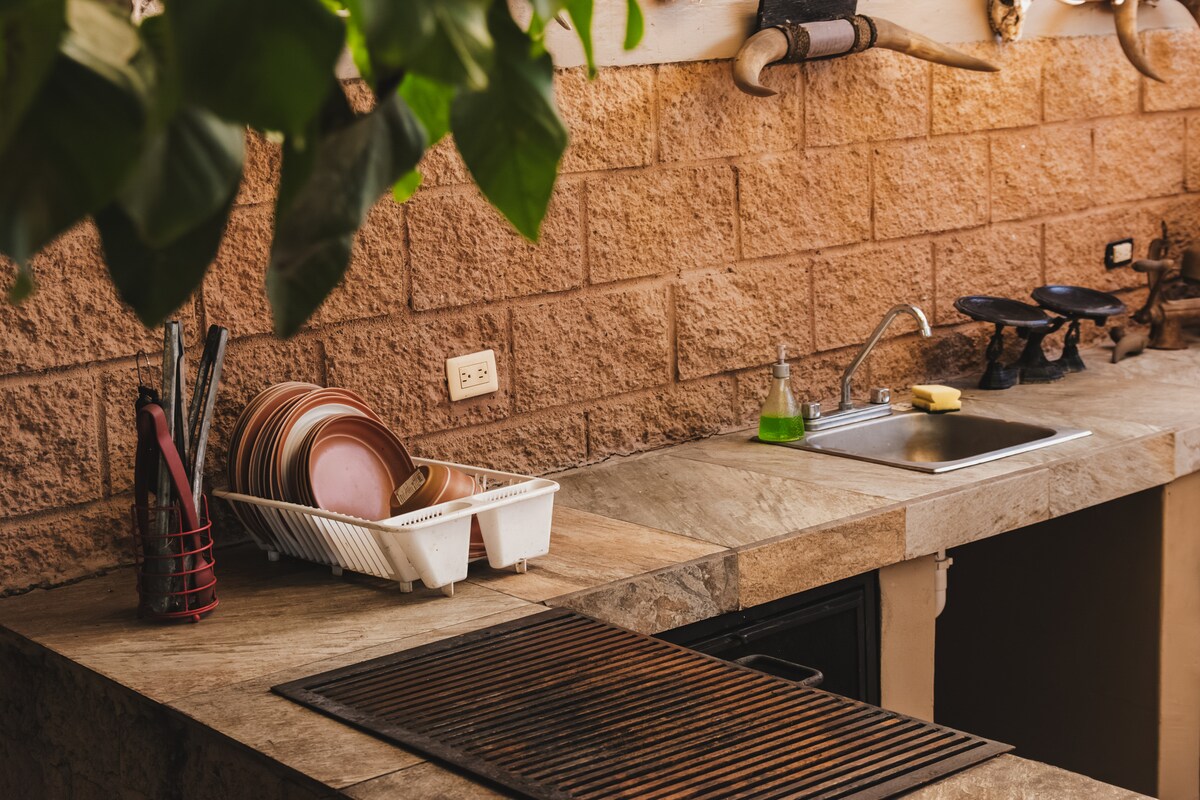 This private palapa casita embodies the desert-meets-tropics experience of San Carlos, Mexico. The spacious open floor plan inside includes one queen bed, a full bathroom, a stocked kitchen, and a large countertop/bar for food preparation, eating and entertaining. The large balcony/patio outside includes a charcoal grill, and wicker furniture. The following utilities are Included: AC, electricity, gas, Wi-Fi, purified drinking water via garrafon (a large jug), space heater and basic consumables.