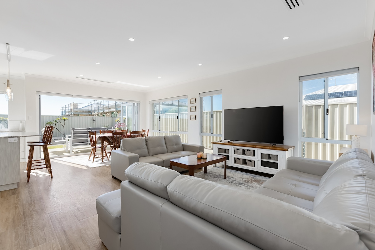 VIEWS EVERYWHERE - walk to the beach and river mouth! This premium holiday house is well appointed and takes full advantage of the fabulous 360°views. Suitable for families, extended family groups, couples and visitors from interstate or overseas. The house is NOT available to young adults and school leavers. Children under 3 are free. Fully equipped with everything you need - seriously - just bring personal items, food, sheets and towels (or request to hire linen). Only 95kms from Perth