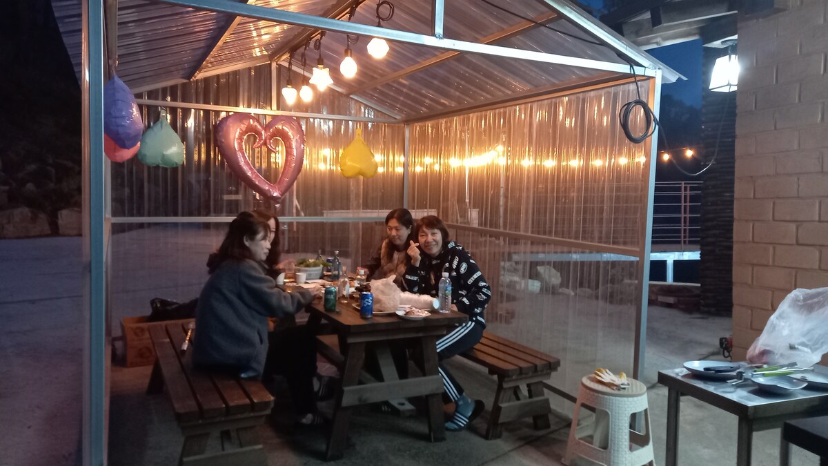 ์๋ ํ์ธ์! ๋ฐฉ ์์์ ์ผ์ถ์ ๊ฐ์ํ ์ ์๋ ํจ์ํด๋จ๋์ง์ ๋๋ค. ์กฐ์ฉํ ์๊ณจ๋ง์์ ์ ์ทจ์ ๋ถ์๊ธฐ๋ฅผ ์ฒดํํ์ค ์ ์์ต๋๋ค. ํนํ ์ผ์ธ์์ ๋ํ์ด๋ ์ฅ๋๊ป์ ๊ณ ๊ธฐ๋ฅผ ๊ตฌ์ ๋จน๊ณ ๋ถ๋ฉ์ ์ฆ๊ธธ ์ ์๋ ํ๋ก๋๊ฐ ๋ง๋ จ๋์ด ์์ต๋๋ค. ์ง๋ฆฌ์ฐ ์ฒญ์ ๊ธฐ์ด์ ํ๊ป ํ์ ํจ์ํด๋จ๋์ง์์ ํ๋งํ์ธ์! * ์์ฉ์ธ์: ๊ธฐ๋ณธ 2์ธ / ์ต๋ 6์ธ (์ถ๊ฐ 1์ธ ๋น 20,000์) * ์ฅ๋๊ป ๋ฐ๋ฒ ํ ๊ฐ๋ฅ: 3๋ง, ์ฐธ๋๋ฌด ์ฅ์ ํ๋ง ์ ๊ณต * ๋ํ๋ฐ๋ฒ ํํ๋ก ๊ฐ๋ฅ: 3๋ง, ์ฐธ๋๋ฌด ์ฅ์ ํ๋ง ์ ๊ณต * ๋ถ๋ฉ ๊ฐ๋ฅ: 3๋ง, ์ฐธ๋๋ฌด ์ฅ์ ํ๋ง ์ ๊ณต * ๊ฐ๋ง์ฅ ๊ฐ๋ฅ: 3๋ง * ์์์ฅ: ์ฌ๋ฆ์ฒ ์๋ง ์ฌ์ฉ๊ฐ๋ฅํ๋ฉฐ ์ถ๊ฐ์๊ธ์ ์์ต๋๋ค. * ๋ฐฉ ์์์ ์ทจ์ฌ๊ฐ ๊ฐ๋ฅํฉ๋๋ค. (์ ๊ธฐ, ์ ์๋ ์ธ์ง, ๋ฐฅ์ฅ, ์ทจ์ฌ๋๊ตฌ ์๋น) * ์ฐจ๋ก 10๋ถ ์ด๋ด์ ํ๋๋ก๋งํธ, ํ๋งํธ, ํค๋ชจ๋งํธ ๋ฑ ๋ํ ๋งํธ๊ฐ ์์ต๋๋ค. * ํจ์ ์์ธ๋ฒ์คํฐ๋ฏธ๋์์ 10๋ถ ๊ฑฐ๋ฆฌ์ ์์นํด ์์ต๋๋ค. * ๋ฐ๋ ค๋๋ฌผ ๋๋ฐ ๋ถ๊ฐ์ ๋๋ค. ํ์กฐ ๊ฐ์ฌ๋๋ฆฝ๋๋ค