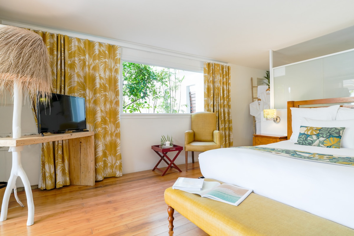Come and discover one of our 753sqft apartments with terrace and sea view thanks to its position on the heights of Anse des Flamands. - 70m² of elegance and space - Covered and heated swimming pool all year round (unique in Saint-Barth) - 5min from the beach of Flamands - 10min from the airport & from Gustavia - Jacuzzi - Air conditioning - Fully equipped kitchen - Terrace with sunbeds - Free parking space Enjoy a moment of calm and rest in our Residence Hotel Rêve de Saint-Barth.