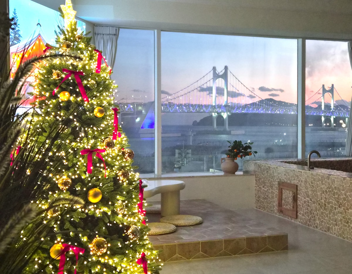 Yeongdo Night_Suwahe/Private Room/Busan Port Grand Bridge Full Ocean View/Jacuzzi/Rooftop/Camping/Bulmung/Barbecue/Grilled Shellfish/Living for a Month