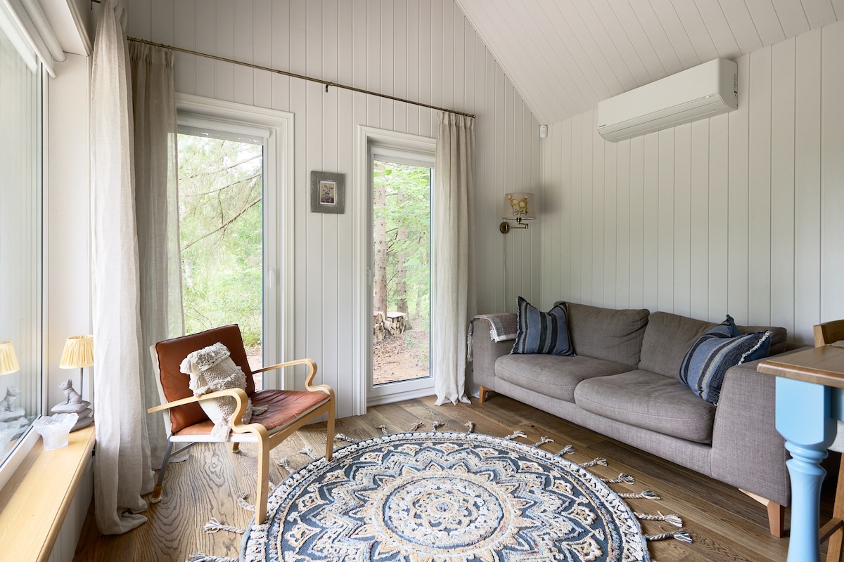 Our cozy tiny home is perfectly situated in the woods yet just minutes from the city centre. This charming retreat features a hot tub under a canopy of trees, where you can unwind while listening to the soothing songs of local birds. Inside, enjoy modern comforts with a well-equipped kitchen, a comfy sleeping loft and dining area with unique dome window. Ideal for couples or solo adventurers seeking a blend of nature and convenience, our tiny home promises a rejuvenating stay.