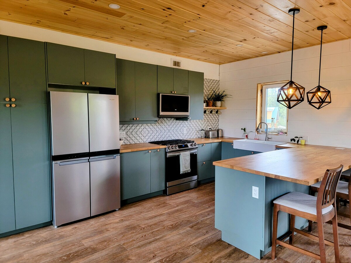 This beautiful, modern 3 bedroom house is nestled into the forest on 3 acres of private land with a stunning view of the mountains. The stylish open concept space is the perfect base for your adventures in Kluane National Park with lots of room for groups & families. Cook meals for your family in the well appointed kitchen, get cozy in front of the woodstove on a special weekend retreat or set up a remote office in the mountains with fast wifi. There is a large wrap around deck & ample parking.