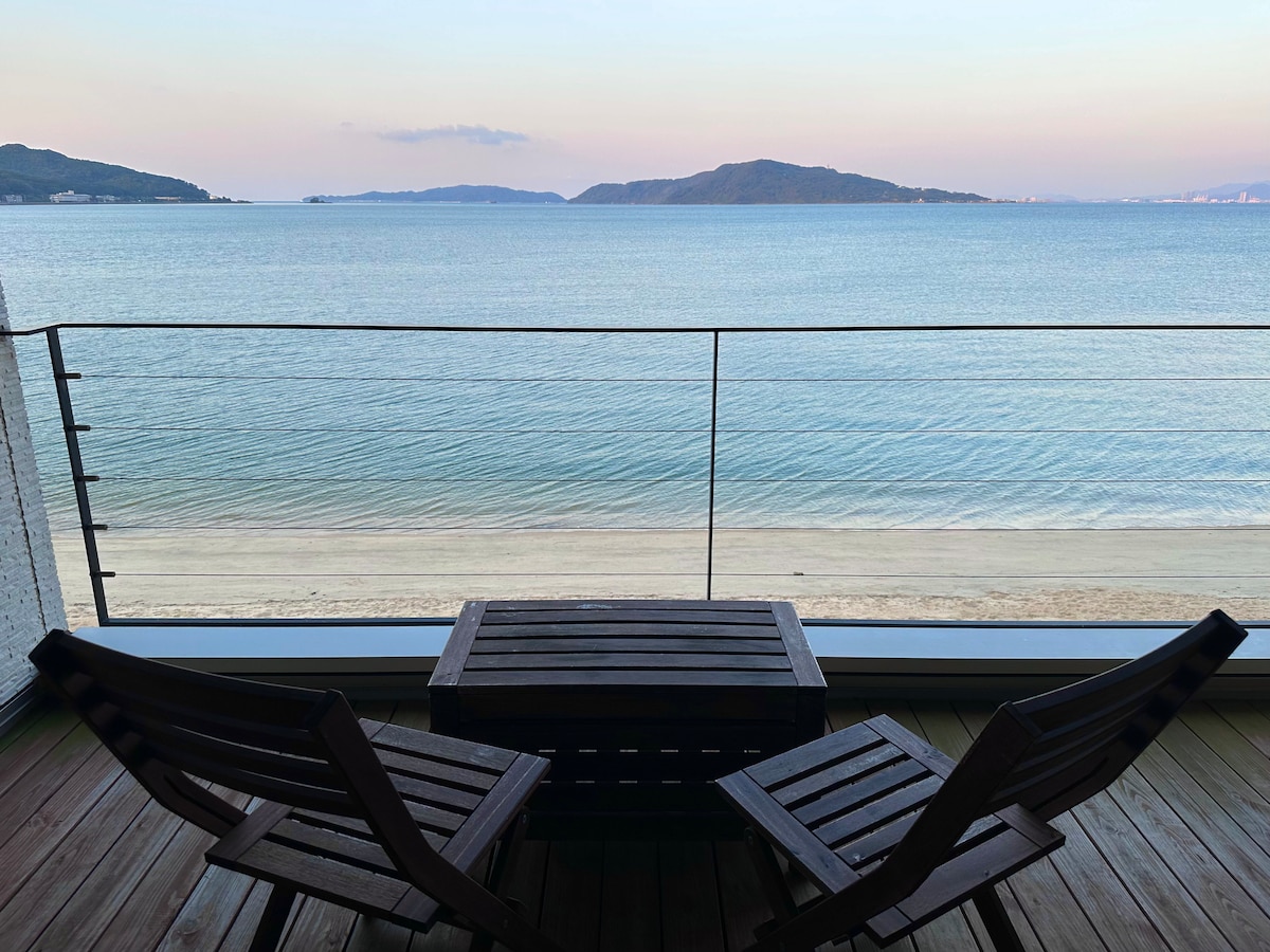 The clear sea spreads out in front of you, and at dusk, the beautiful sunset gently envelops your heart. Enjoy a relaxing time in a private space with the latest kitchen facilities. Only 35 minutes by car from Fukuoka Airport. Enjoy a special time in a detached house on a beautiful coast overlooking Nogoshima Island, away from the hustle and bustle of the city. ■ Villa A new, extraordinary experience in a residential neighborhood right in front of the sea. ■ Living Room Spacious living room. Please have a relaxing time with the sea. ■ Terrace A terrace with the sea right in front of you. Quiet time flows with the sound of the waves. ■ Bedroom Equipped with two bedrooms. You can wake up to a beautiful morning with the sound of the waves. ■ Other A separate sink is provided in the spacious bathroom.
