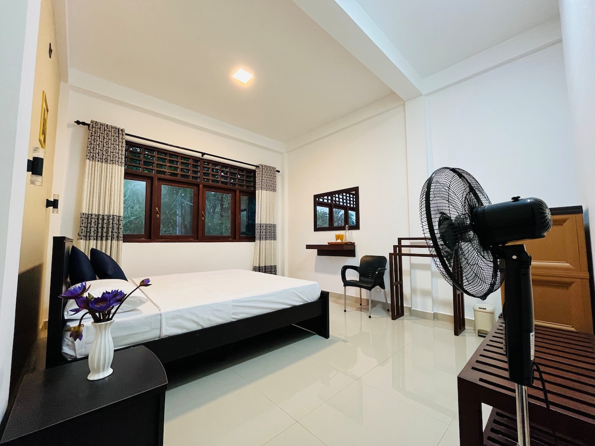 Welcome to Solace Inn Residency Experience style and comfort in this inviting getaway, 5 mins from sun-kissed beaches, vibrant restaurants, and charming shops. Ideal for solo adventurers, couples, or small families, it's your gateway to paradise. Just 300 m from Unakuruwa Beach, 600m from Surf Paradise Beach, and 1.6km from Silent Beach. Book now for your coastal escape 🌊✨ The Space: 🌟 3-BR apartment with queen beds 🍳 Fully equipped kitchen for cooking needs 🌿 Private balcony, garden views
