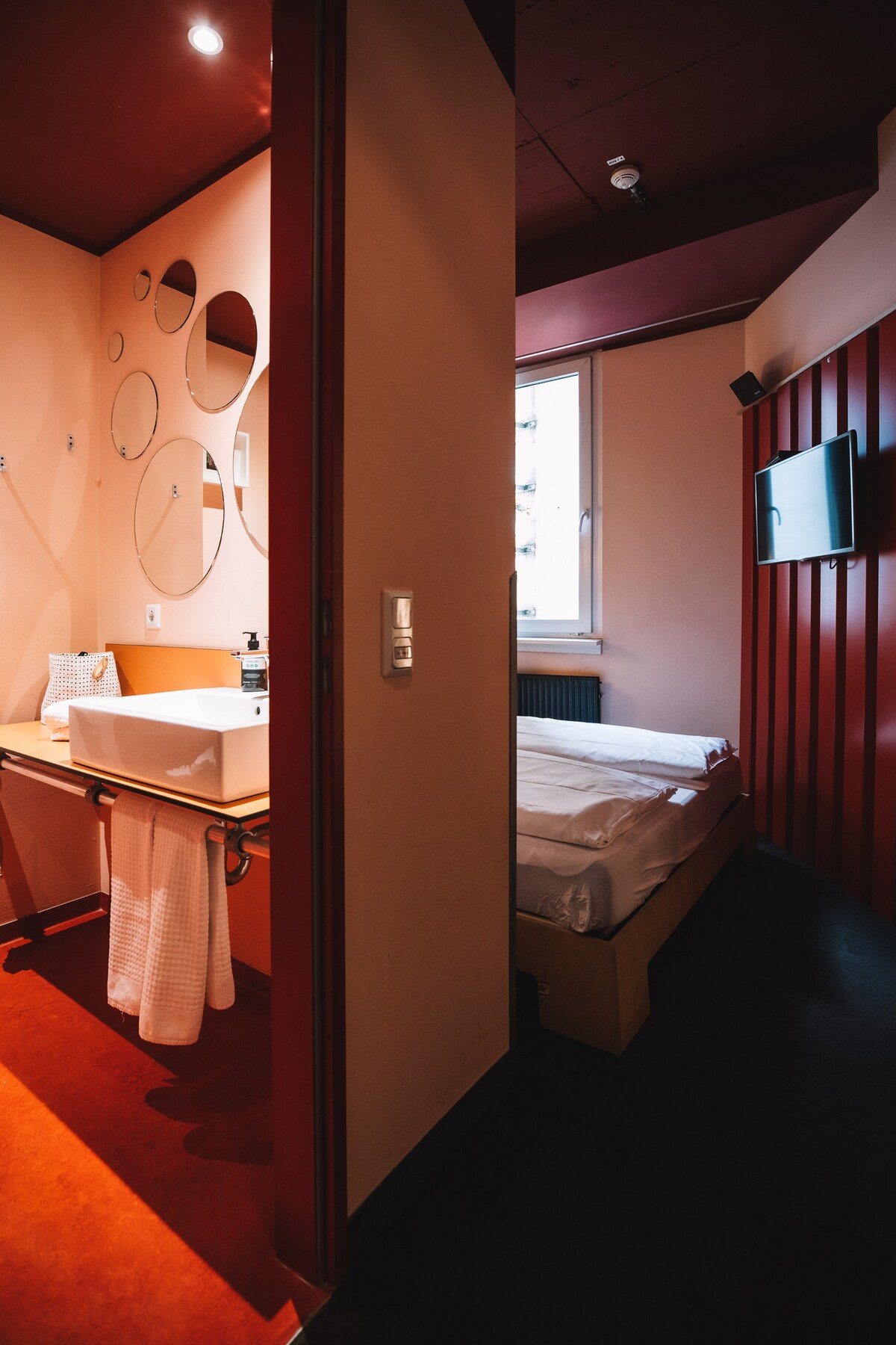 Welcome to our RetroPop Minihotel in the heart of Hamburg! The stylish rooms with private bathrooms for up to 2 people offer the utmost comfort and privacy. Each hotel room has been carefully thought out and lovingly furnished to make your stay unforgettable. The room is equipped with a cozy sleeping niche with a loft bed as well as a stylish lounge area with a couch. The workspace is perfect for getting a productive start. We look forward to seeing you!