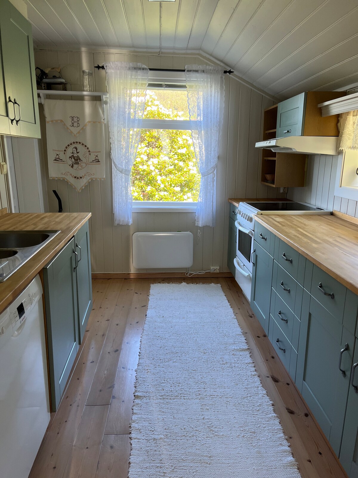 Cozy cabin by the Hardangerfjord. Here is a 180-degree panoramic view that gives a very special contact with the fjord and the mountains. By the cabin wall to the east, you can enjoy a quiet morning. In the evening you relax on the terrace to the west. On windy gray weather days, you can be fascinate by the waves right outside the living room window. The cabin has a 60s interior with its own warm atmosphere and character and are suitable for a family, a couple or friends.
