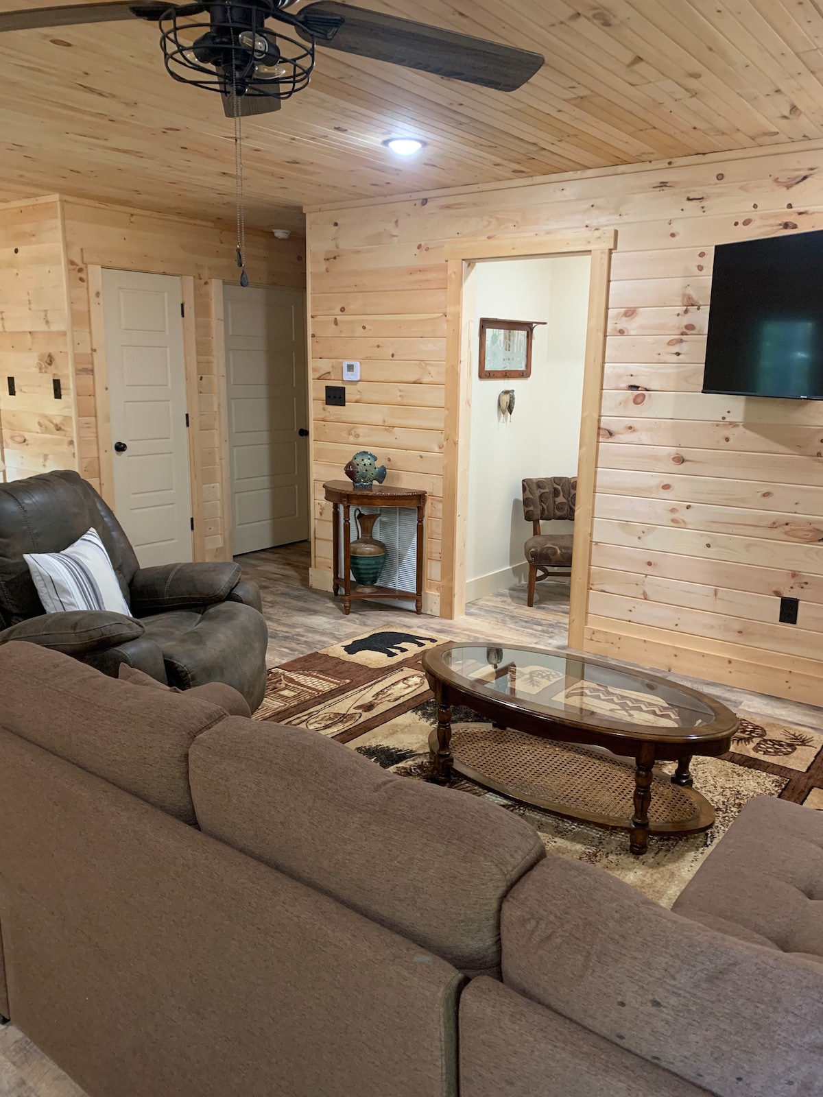 Take it easy at this unique and tranquil getaway. Relax in our rustic non-smoking apartment room with a 1-bedroom queen suite, walk-in shower, a fully furnished kitchen, & a living room. Perfect for a romantic couple's getaway or a sportsman enjoying Hardin County's many adventures. Outdoor kitchen & large covered porch on property. Trailers are not allowed on property-secure storage available near by. Please notice: Violation to house rules will be asked to leave immediately without refund.