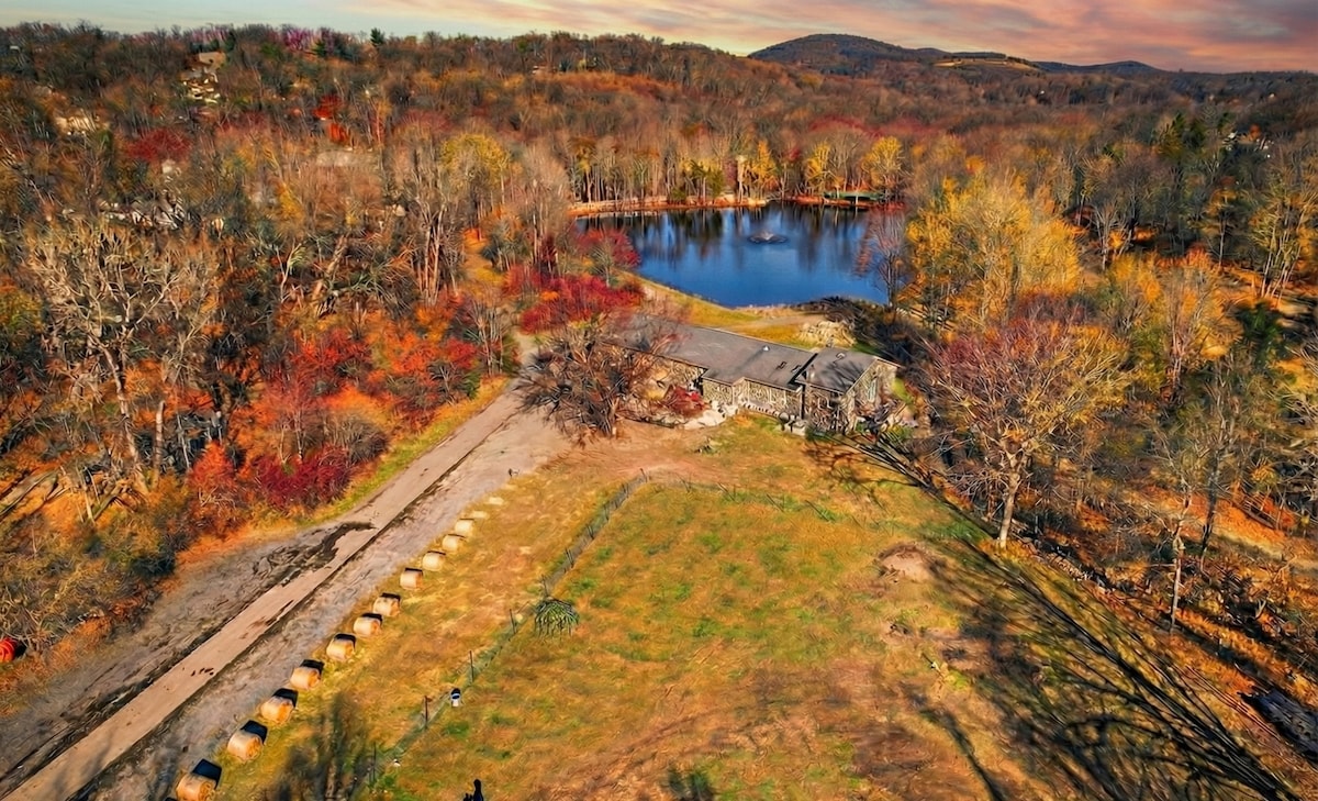 Quiet Private lakehouse set down on 2 rare rock bluffs giving you a majestic water view just like it was in 1939. Extra Lg Great room w a huge fireplace. The great kitchen surrounds the chef. Big hot tub, Rowboat with canopy, 8 kayaks, Treehouse, Neverending Lakeside windows, docks, 1 hr from Manhattan w Eagles & vast wildlife like you were in the deep woods. Clean, unspoiled lake full of fish. Never had gas motors. A Mountaintop lake above the ski area. Stargazing! Perfect for get-togethers.