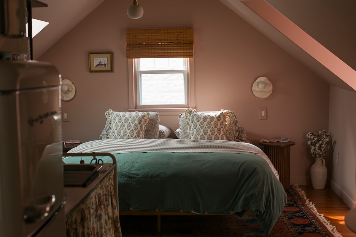 This renovated historic carriage house is 2 blocks from Harrisonburg’s vibrant downtown. The space is light and airy with gabled ceilings and sky-lights that open. It is located on a leafy residential back-alley, with private entrance and off-street parking. JMU’s bluestone campus is a 10 minute walk away. We’ve set-up this space for a range of guests: from JMU parents visiting their children to people traveling for business who are seeking a more textured experience with home comforts.