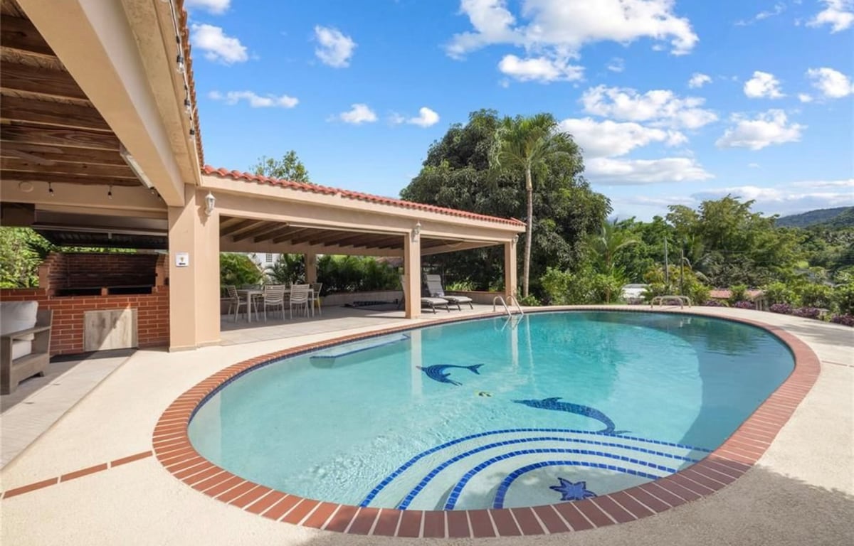 Forget your worries in this spacious and serene getaway in the mountains of Guaynabo - one of Puerto Rico’s most desirable neighborhoods. Enjoy warm evenings grilling by the pool and cool mornings with a coffee listening to the sound of birds. This is a 4 bed/3.5 bath home. You are 20 minutes driving from the best restaurants and beaches and 30 minutes from Old San Juan. Access to 2 fully stocked kitchens (indoor and outdoor), gym, pool, laundry and beach gear provided.