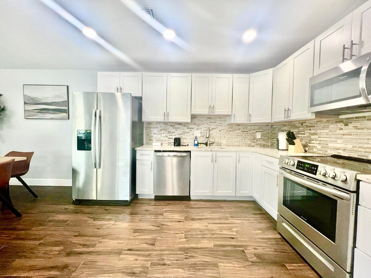 Welcome to our newly renovated executive standalone house, featuring modern furnishings, high-end appliances, and luxurious amenities. Relax in the spacious living room, cook a gourmet meal in the fully equipped kitchen, or unwind on the large patio with comfortable outdoor furniture. You'll love the jet massage shower, soft king size bed, and quiet location. Enjoy a private entrance, two dedicated parking spots, and smart 65" TV. Book now for a convenient and luxurious stay in West Palm Beach.