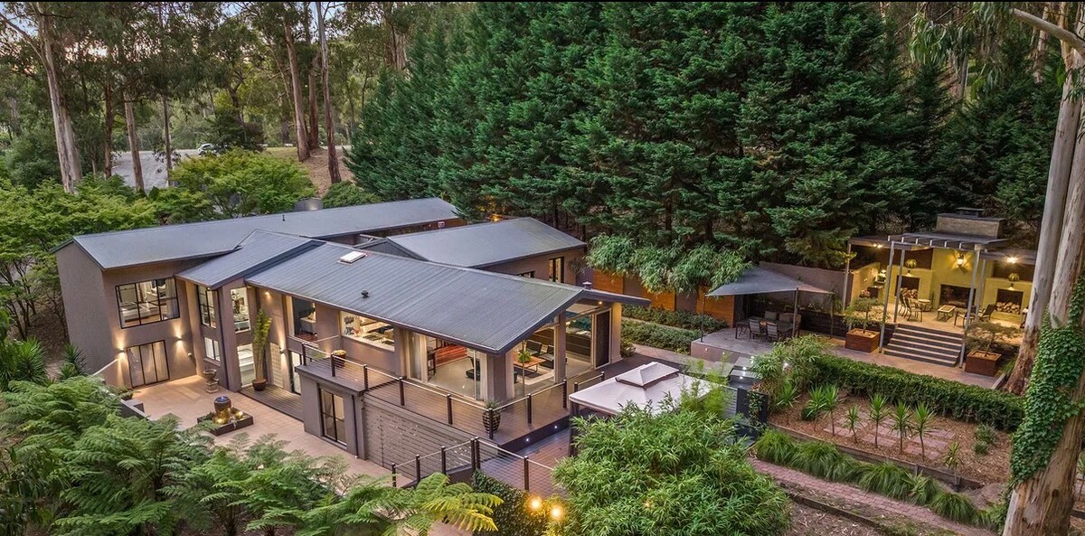 Kangaroo Manor is a luxurious 40 acre private paradise, offering you a truly unique Australian Experience. From the moment you drive up the magnificent drive, this architecturally designed, hexagonal glass house takes in the breathtaking views. High ceilings, glass walls, very private, huge amazing pool, we have a river walk on the property and it's close to wineries and all the Yarra Valley has to offer. Only an hour from Melbourne CBD.