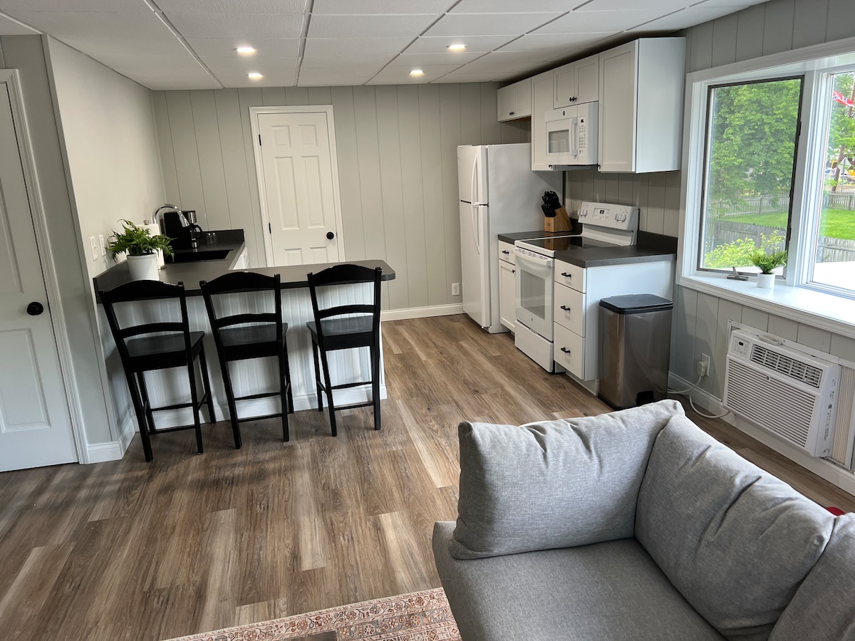 Take it easy in this unique and tranquil getaway. This second floor flat allows a seasonal peak of the river from the large deck off the main bedroom. Everything you need for a restful getaway is here. Bring your bikes and your walking shoes as the Rivertown Trail is just a short walk away. Get some exercise, take a morning stroll or a romantic evening walk into the heart of downtown Newburgh. There are delicious restaurants and sweet shopping to be enjoyed. Or…just relax…you get to choose.