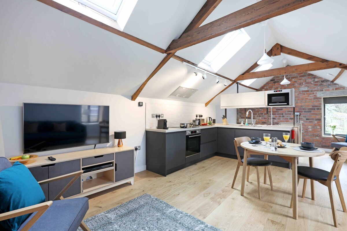 The Coach House is perfect for couples seeking a relaxing break; whether sight-seeing, walking, dining out, everything is on your doorstep. Built in the 1800’s the Victorian red brick and wood beams are a feature of the upstairs, open plan living area, which is fully equipped with everything you need for a chilled out self-catering break. On the ground floor, the bedroom can be configured as generous king size bed or a twin at your request. There is a Private parking bay for one car.