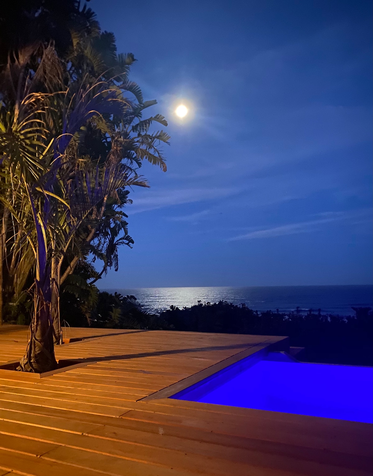 Welcome to the Splash Rock Villa The beautiful Splash Rock beachfront villa. The living areas open to a rim flow pool, Jacuzzi and wooden deck with a fire pit. The open plan; beautifully designed kitchen has substantial equipment for the lovely chef to cater for each and every one of our guests. This magnificent beach house is completely surrounded by forest with boasting ocean views, situated in the sunny coastal town of Port Shepstone, KZN.