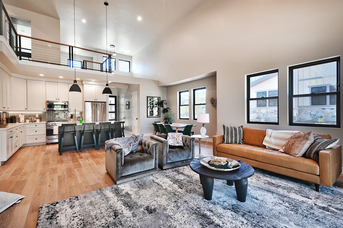 Welcome to The Bluebird Haus at the Jordanelle near Park City, Utah hosted by No Worry Vacations. This new construction townhome provides modern luxury and a curated world traveler vibe. The expansive feel of this home with vaulted ceilings and an open concept gives you the ultimate modern Utah mountain home. DURING SKI SEASON THERE IS NOW A SKI SHUTTLE FROM 8AM TO 5PM JUST DOWNLOAD THE MOUNTAIN MOVER APP AND START A NEW PROFILE. IT PROVIDES DOOR TO DOOR ACCESS. Enjoy partial views of the