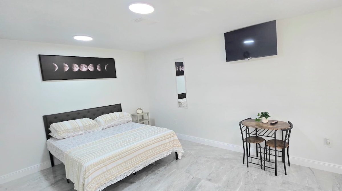 This 1 bedroom guest house in Clearwater, is truly a fantastic retreat. Feel at home with all the amenities. Great location, safe surroundings, fenced private courtyard for smoking, 5 miles from Clearwater beach. Affordable, queen bed, kitchen, shower, Netflix, free driveway parking on premise. Thoroughly cleaned after every guest check out. Come and enjoy in this beautiful city.
