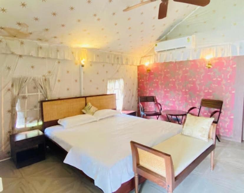 Luxury Camps in Raison: Wake up to epic Himalayan views, unwind under a canopy of stars, & relax in style. ️ 10 spacious tents w/ comfy beds & modern bathrooms. Adventure awaits: paragliding, rafting, & hidden gem exploration. Cozy bonfires, personalized service, & epic mountain memories. Escape the ordinary. Book your unforgettable glamping adventure today!