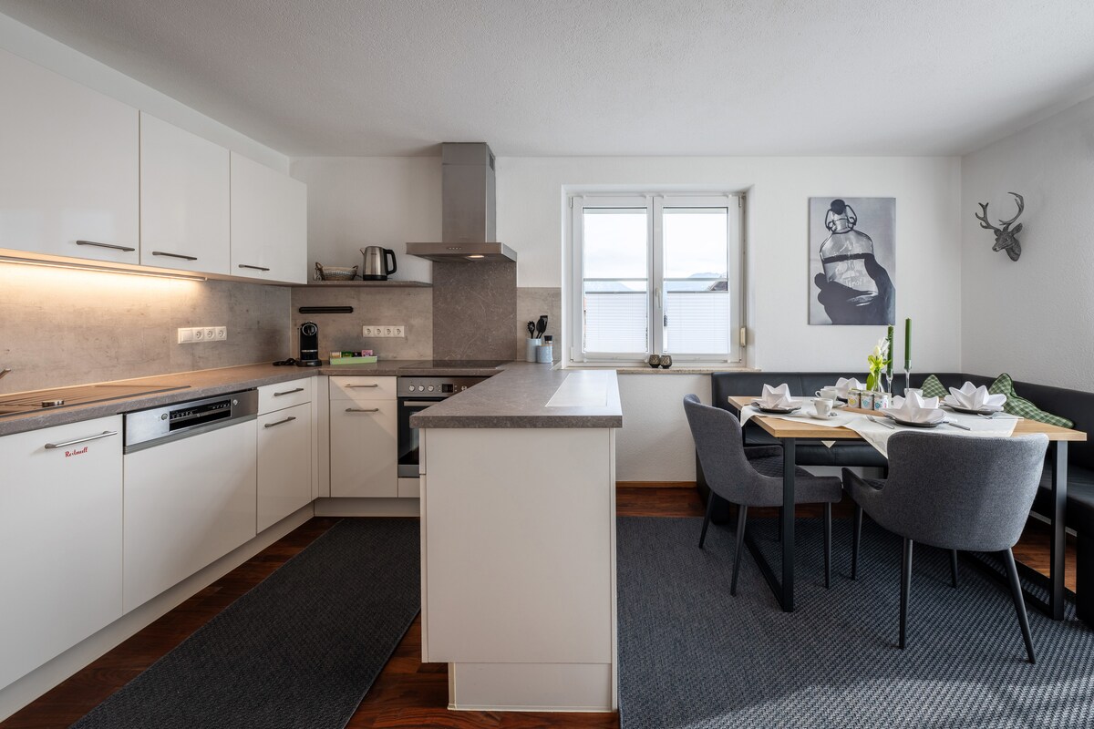 Welcome to the beautiful district of Garmisch. As the epitome of luxury and alpine elegance, our apartments set new standards in the exclusive, just as cosmopolitan and quiet recreation area in Garmisch Partenkirchen. Thanks to its privileged location, the apartment offers you a breathtaking view, where the morning sun welcomes you for a cosy breakfast with a view of the Zugspitze.