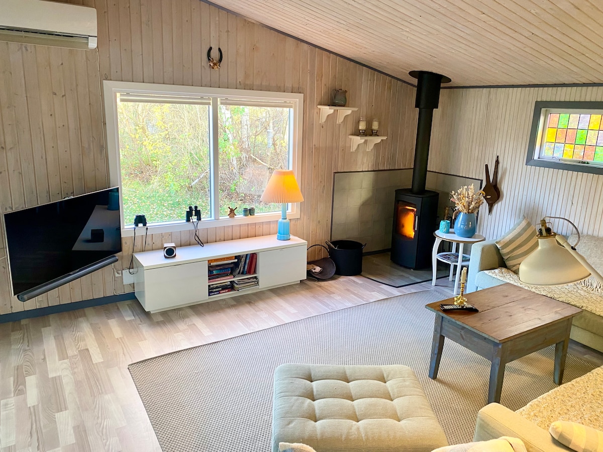 Cozy cottage for the smaller family or couple who need peace and cozy socializing. The house is located in scenic surroundings with a short distance to a lovely beach 🏖️☀️ The house is modern without being flashy. It has several good outdoor rooms and there are tables and chairs, sun loungers, hammock, benches, gas grill and fireplace. If you like to play, there are various board games, badminton, ladder golf, kings' games, etc. There is a rich wildlife in and around the garden where there are often visits by deer, squirrels, hares and owls.