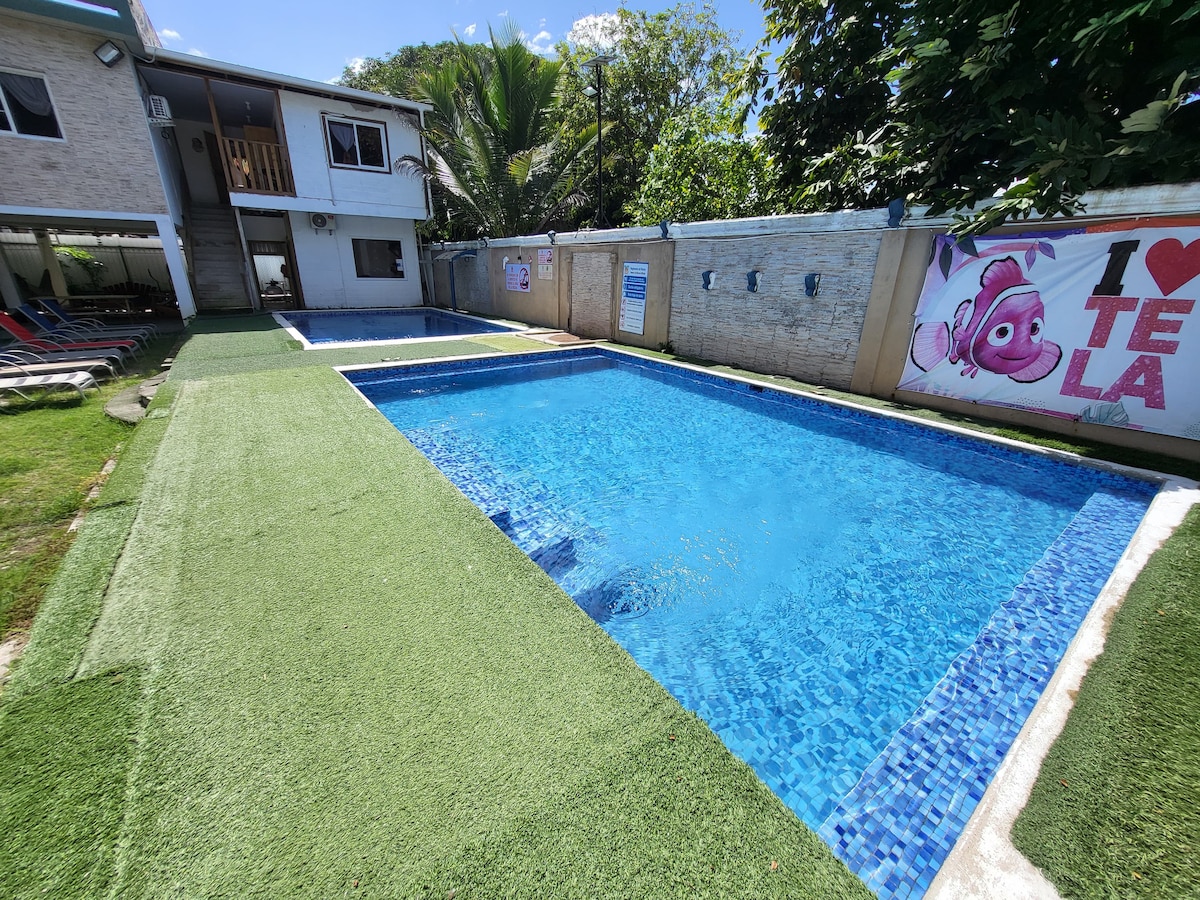 It is a country property, surrounded by nature and birdsong. Ideal for sharing with family and friends We have room for up to 16 people We have 6 rooms, all with air conditioning We are located in the Garifuna community of Sambo Creek, 300 meters from the CA-13. 15 minutes from La Ceiba. 1 kilometer away: 🔹️We have the beach. 🔹️the exits to Cayos Cochinos 🔹️Hot springs 🔹️canoping. 🔹 Mermaid's Waterfall 10 minutes (by car) to the community of Corozal.