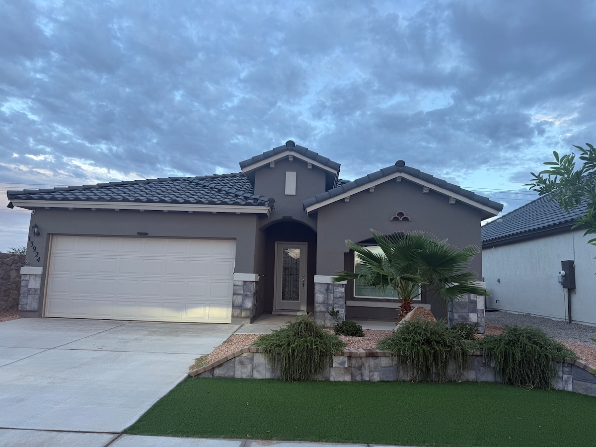 Welcoming spacious Dessert Getaway home. This new 3 bedroom/ 2 full bathroom home will become your "home away from home". This comfortable home is ideal for families & business travelers. Enjoy the open space living room with plenty of space for activities. Whether you need to get work done in the dedicated workspace or have a glass of wine with friends at the island countertop, this home provides space for all. HVAC System Outside Dogs allowed at no cost! NO Pets inside please.