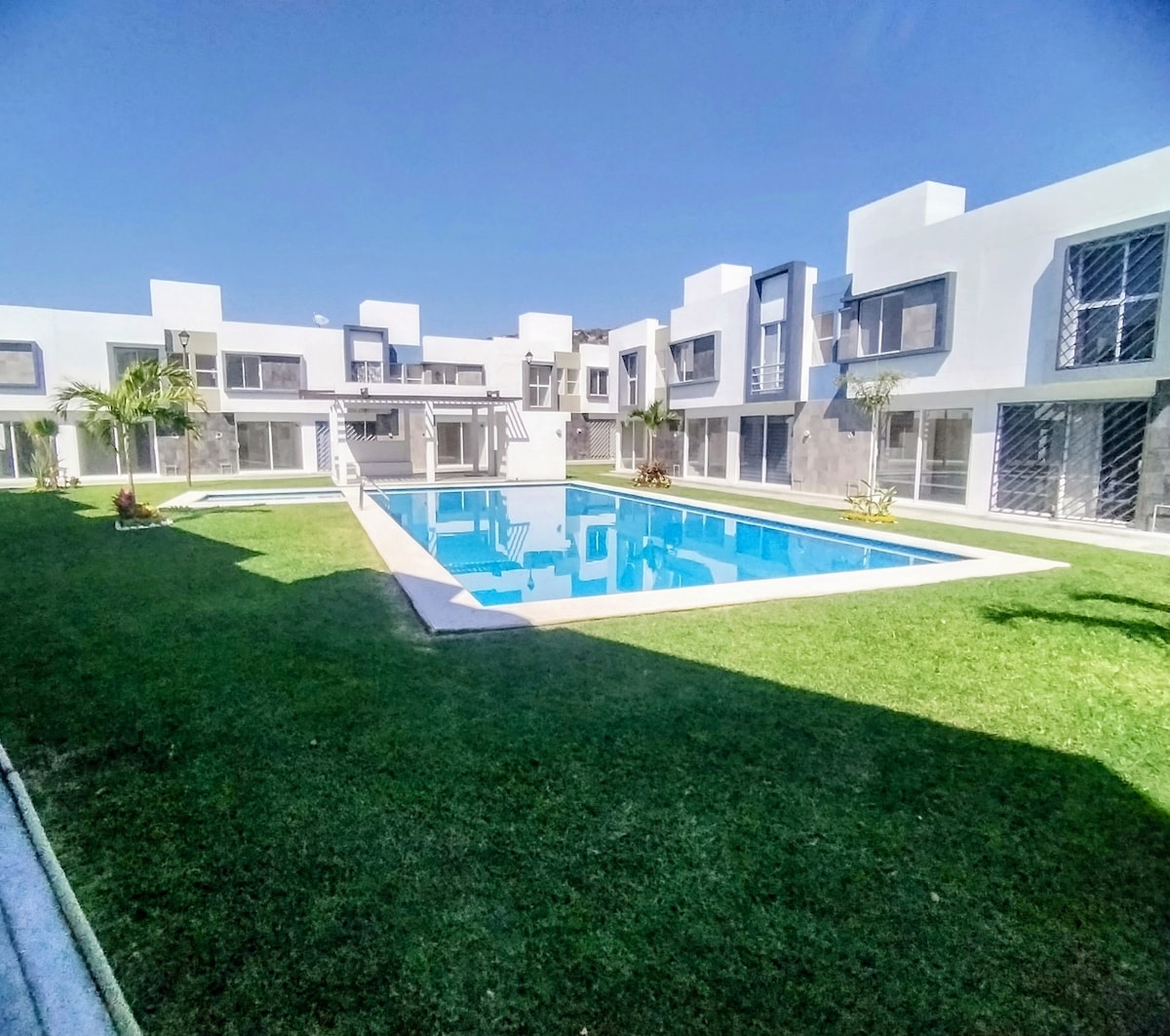 Large house with a swimming pool and private garden. Maximum occupancy of 10 guests but the price is determined according to the number of people staying. The pool has solar cells. Inside the golf club for those who like this sport. Ideal for families traveling with children and wanting to spend a weekend relaxing. It has nearby restaurants and self-service. Close to event halls, zoos, a water park, magical villages and Tequesquitengo Lagoon