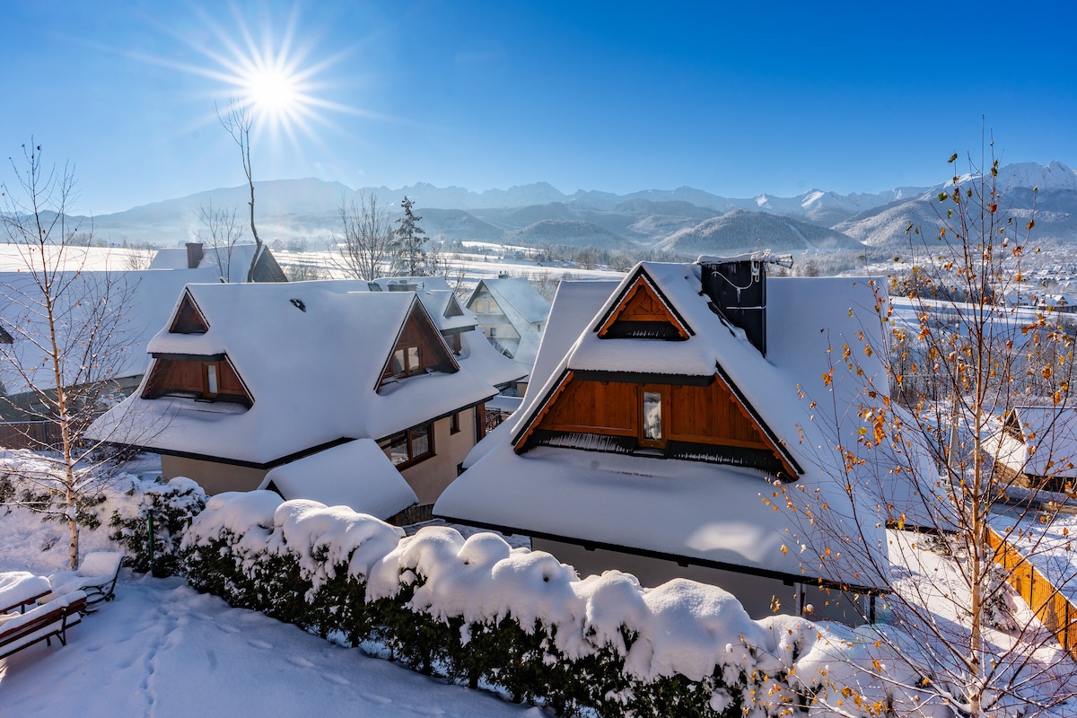 Domek Jaskier z jacuzzi i widokiem na góry