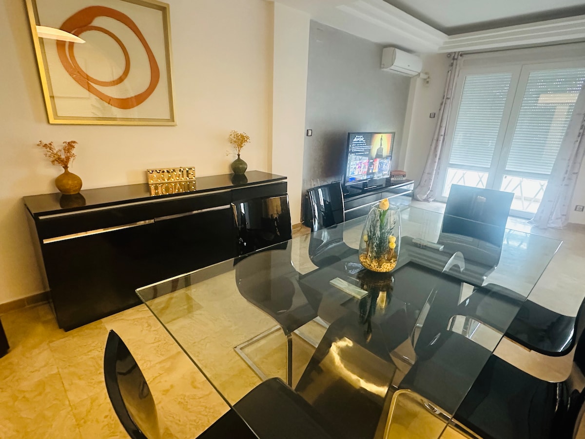 Profitez de ce magnifique appartement pouvant accueillir jusqu’à 5 personnes : un canapé convertible 2 places ainsi qu’un petit convertible une place. L’immeuble est sécurisé et dispose d’une place de parking en sous-sol ainsi que d’un ascenseur pour votre confort. L’appartement se situe à 5 minutes à pied du boulevard Sidi Yahia. Entièrement rénové, il offre un confort idéal. Nous louons uniquement aux familles.
