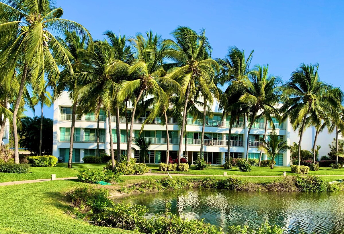 Completely renovated after OTIS !!!!!Beautiful apartment in the Mayan Lakes development, Acapulco Diamante. We have a Clubhouse that offers tennis courts, paddle tennis, a semi-Olympic pool, gym and restaurant. We have a Vidanta membership to use the beach facilities and pools according to their availability. The subdivision consists of 24 hectares of impeccable gardens, lakes and children's play areas and even a soccer field!!