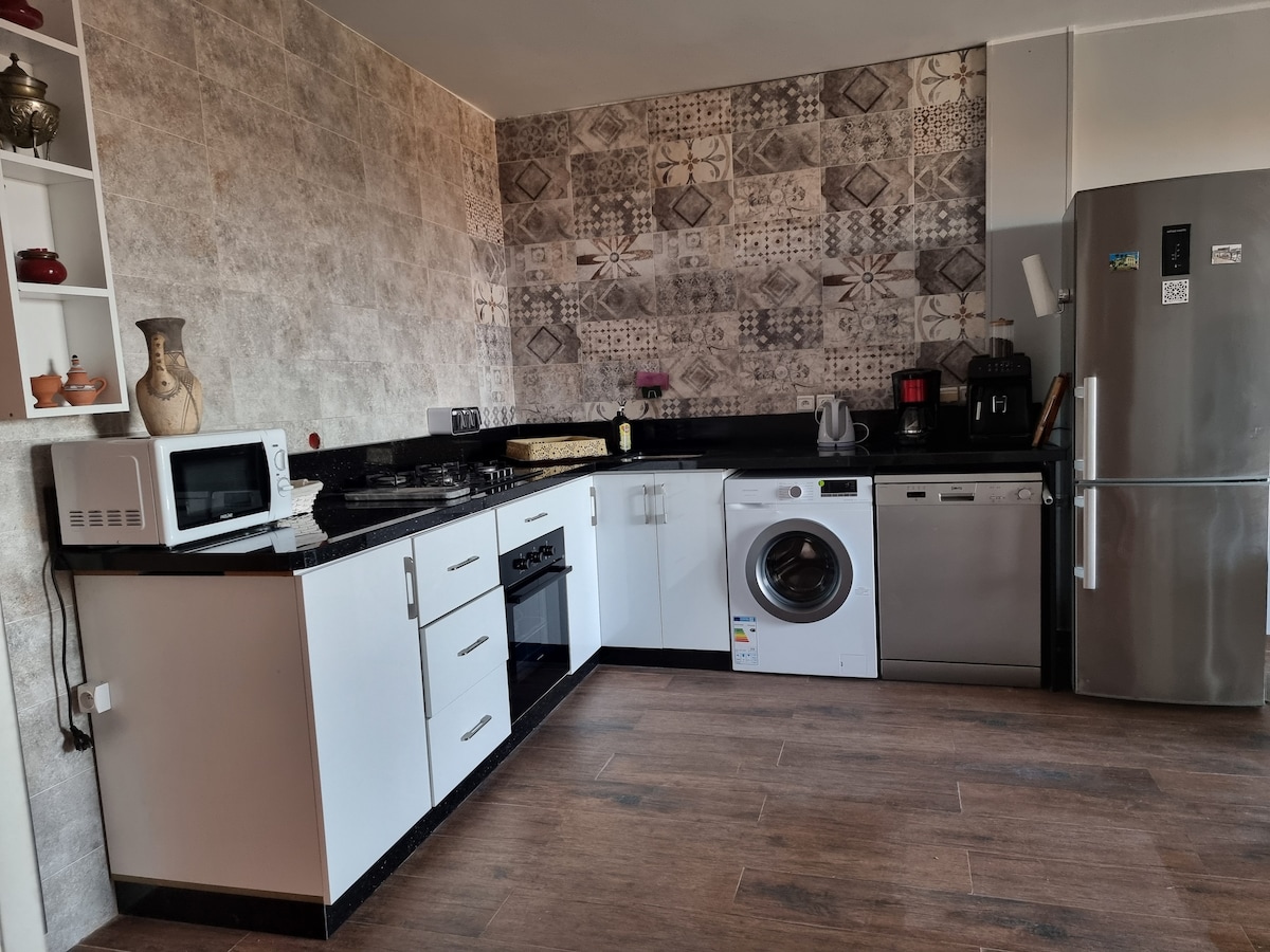 Comfortable apartment, close to the beach with 2 bedrooms (sleeps 5), living room, kitchen and bathroom, walk-in shower and on the balcony a nice Jacuzzi pool in Moroccan zellige, heating at room temperature (empty in December, January, February) Residence secured by camera, and guard, free parking in the residence. shops down the street, pharmacy, grocery store, butcher... aquatic center