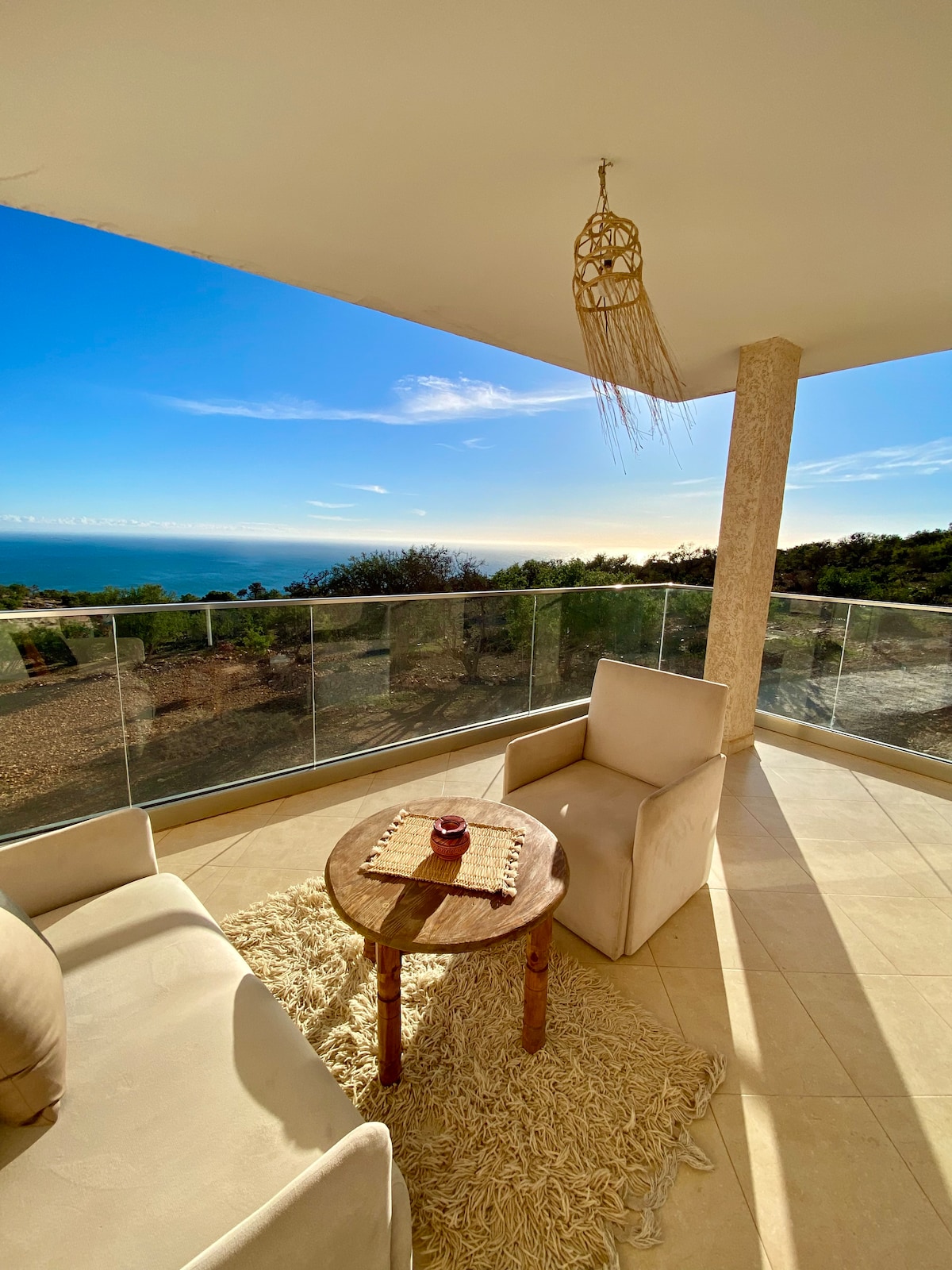 Escape to our bright apartment for 4 people, with stunning ocean views. Enjoy a large private terrace with a barbecue and firepit, perfect for admiring the sunsets. Located in a quiet area, just a short walk from the beach and surf spots. Ideal for couples and friends, this unique space combines modern comfort and Moroccan charm, with two cosy bedrooms and a dedicated work area. A unforgettable getaway awaits.