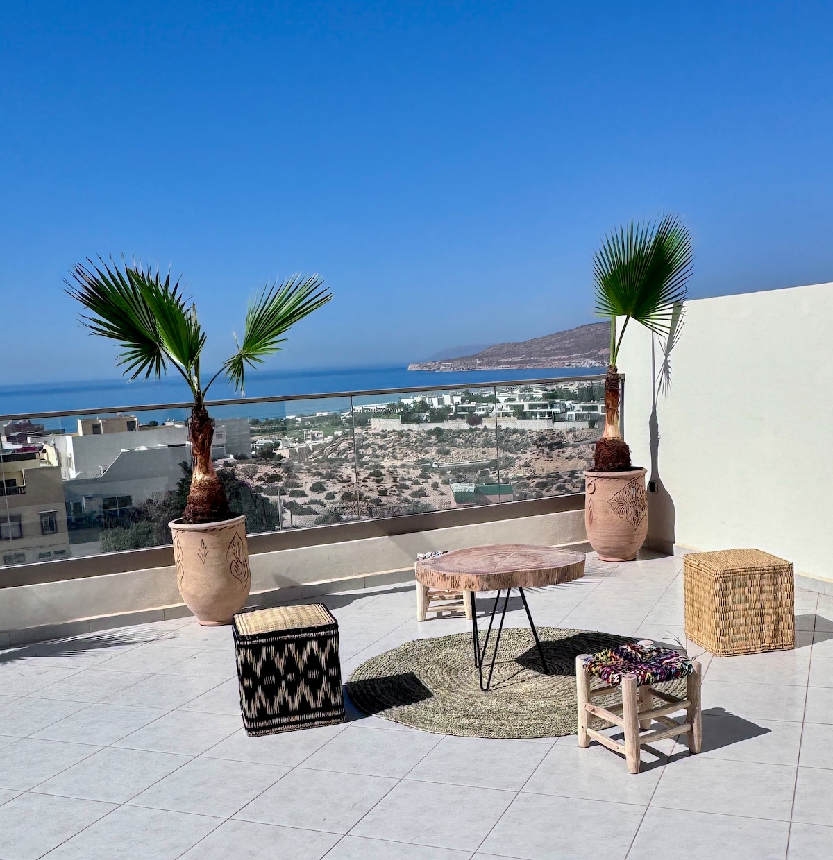 Welcome to our authentic apartment, nestled in the heart of Taghazout, just 4 minutes from golden beaches and famous surf spots. This true haven of peace invites you to immerse yourself in the warm and dynamic atmosphere of Moroccan life. With its comfortable spaces and traditional charm, our apartment promises you a unique experience, where every detail has been carefully designed to make your stay unforgettable.