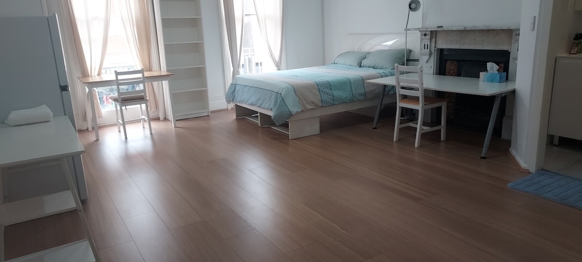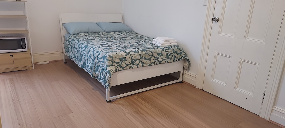 A few blocks away from Enmore Road (recently named coolest street in Sydney) is this recently refurbished space. There is a huge, luxury bathroom (outside the apartment), a kitchenette and a dining space. This Victorian / Italianate freestanding terrace in an incredible part of Sydney close to transportation and the CBD. Being a home built in the late 1800s, the house itself is a grand dame. It groans and creaks with its occupants. The bedroom is underneath the main house’s living areas.