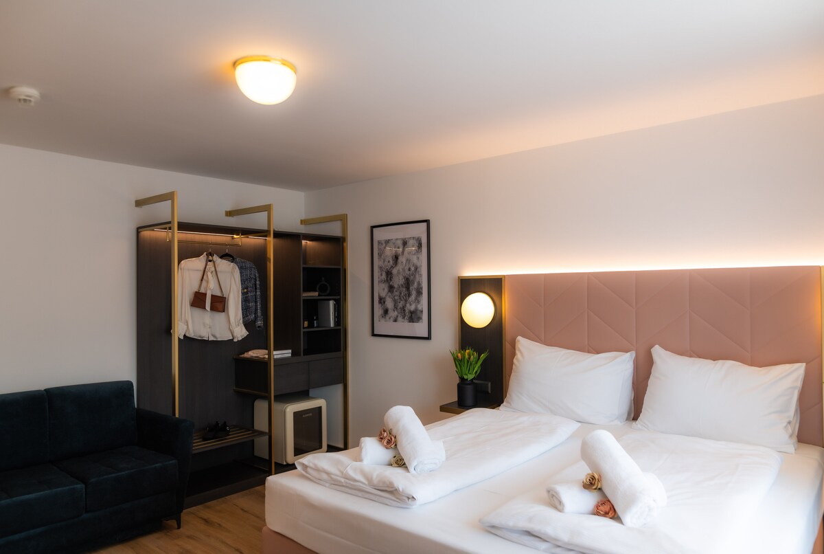 Our place is located in Vienna and with Schönbrunn Palace reachable within a 15-minute walk. We provide express check-in and check-out, allergy-free rooms, a garden, free WiFi throughout the property and a terrace. Beyond providing deep rest, we want you to savor every moment of your visit to Vienna. That’s why we’ve curated experiences designed to enhance your journey Together with the room, we are offering all our guests 1 hour of free access to the pool and sauna.