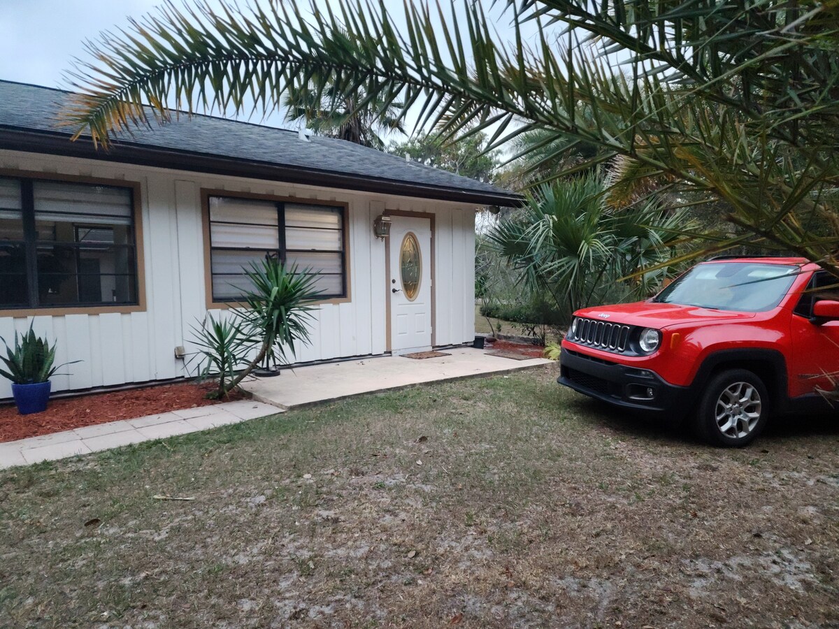 Our tranquil getaway! Whether on vacation or traveling for work, this is the place to stay! With a beautiful pool and gigantic screened in area with comfortable patio furniture and a place to have your meals outside, you can't beat our guest house for enjoying Florida's weather. Inside, we have just added a stunningly comfortable new Queen sized bed with a "Purple" mattress on an adjustable frame. We have hi speed wi-fi and a large screen TV with Amazon Prime, Netflix, and more.