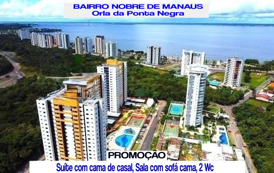 Você merece um espaço confortável para aproveitar a dois ou em família - Apartamento novo no melhor bairro de Manaus * Varanda com visão privilegiada da Ponte Rio Negro; * Piscina social e área gourmet; * Academia; * Garagem coberta (1 vaga); * Elevador social; * Acesso facilitado: supermercado, drogaria, lavanderia e posto de gasolina * Orla da praia de Ponta Negra a 5 minutos - ótimo para caminhada, passeio e exercícios ao ar livre: * Aeroporto a 10 minutos; * Acesso e segurança 24 horas