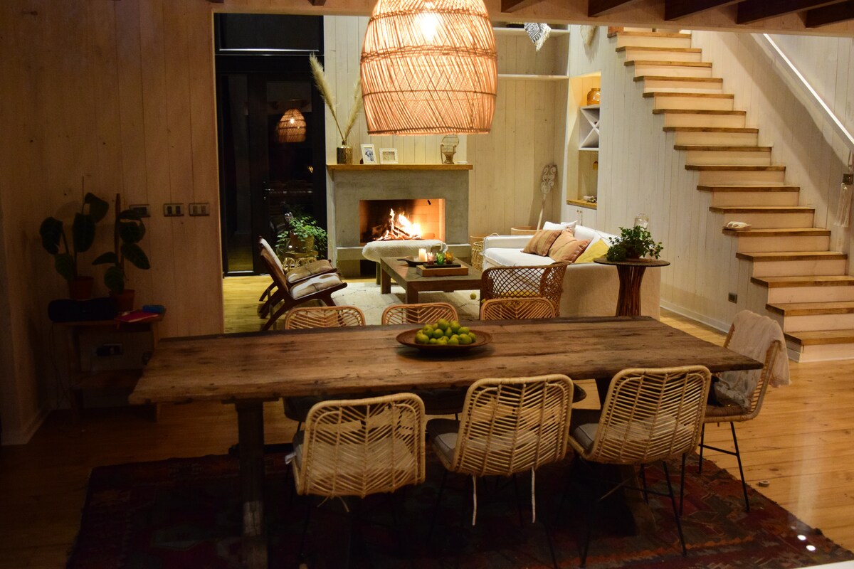 Minutes from Quintay & Tunquén beaches, 1.5 hour drive from Santiago, lies this rare find perfect for couples looking to chill & have fun. Your reservation includes the private guesthouse, use of outdoor hot tub, bbq area, parking, and own entrance. It's the perfect place to recharge, celebrate a special occasion, enjoy nature, relax, and explore! The guesthouse includes over 70 quality modern amenities, sleeps 2, & is clean & bright with a charming aesthetic. Meals also available.