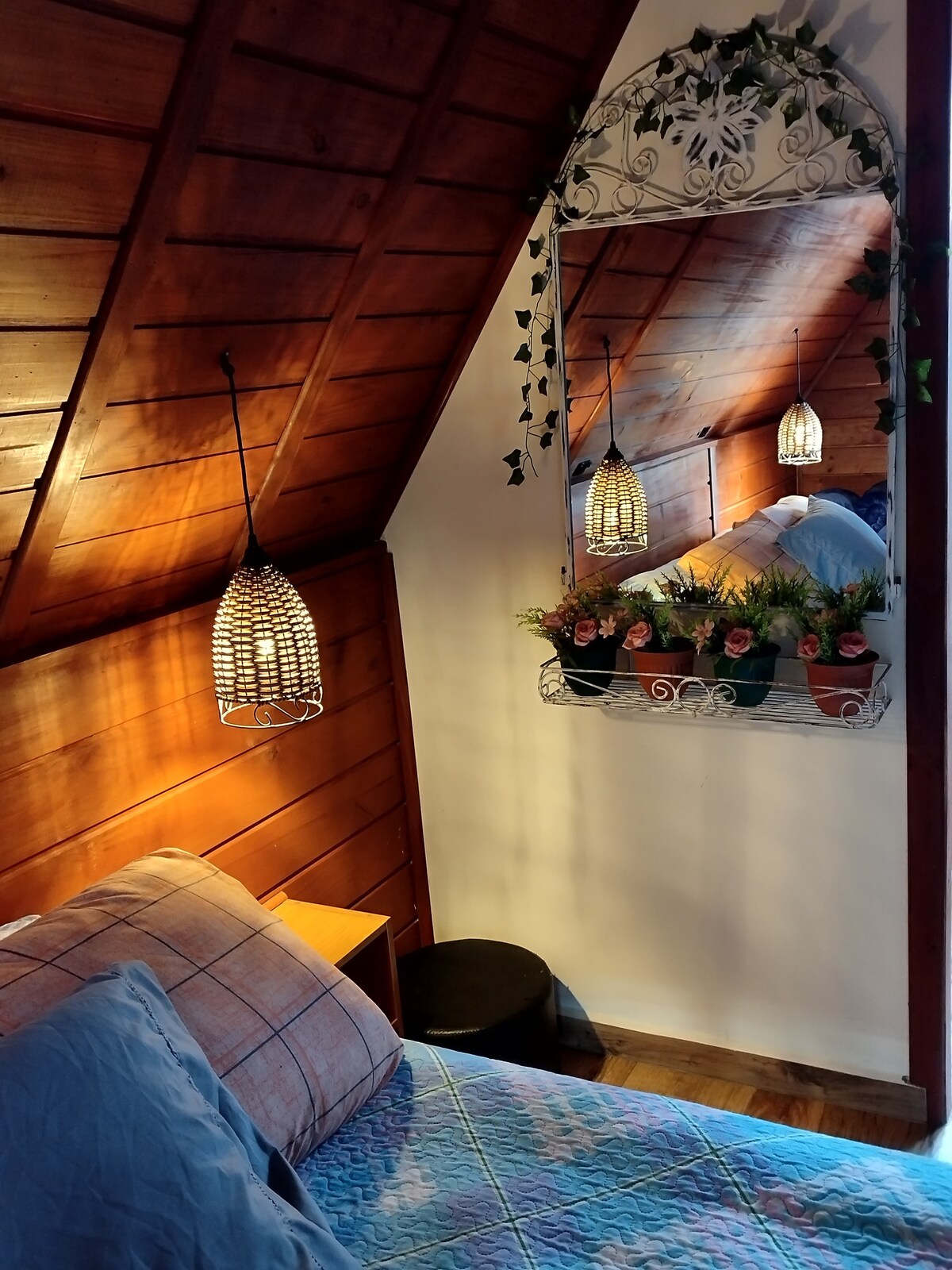 Cozy chalet with a privileged view of the mountain, decorated in the Balinese style, with a Zen atmosphere so that you can be in contact with nature and relax while enjoying our super special breakfast included in the accommodation. Located 5 minutes from Vinícola Góes, Cantina da Tia Lina and Dream Car, 10 minutes from Vila Don Patto and Quinta do Olivardo and 15 minutes from downtown São Roque. There are 10 identical duplex chalets in structure, changing only a few details in the decor, all equally beautiful.