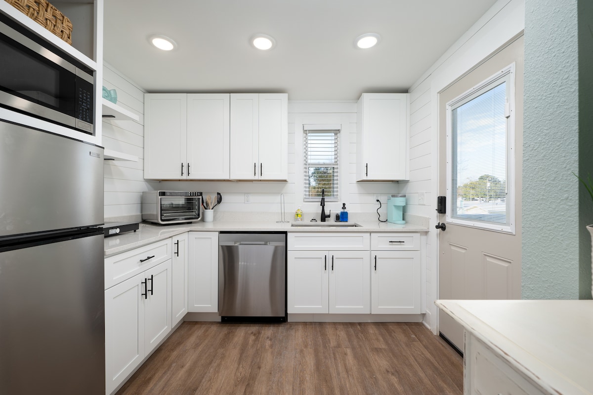 Welcome to relaxation! Just one block from where your feet meet the sand is where you will find this newly renovated beach bungalow. Located in quiet south Jacksonville Beach come grab our complimentary chairs and towels and hit the sand! Walk or drive to local bars and restaurants or stay in and cook with our fully stocked kitchen. Your next beach vacation awaits you here!