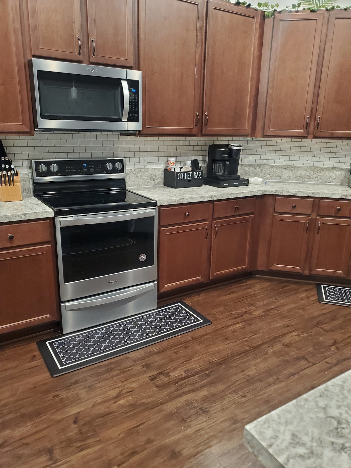 Relax with the whole family at this peaceful abode. It's perfect for relaxing and/or entertaining. There is a full kitchen with complimentary snacks, tea, and coffee. Childproof cabinets. Indoor laundry area and screened in patio to shield you from the sun or rain overlooking the tranquil pond. There is a Ninja Electric Wood Fire Grill on the patio that is perfect for grilling or air frying your favorite foods. Long term stays are available. Perfect for military families or traveling nurses.