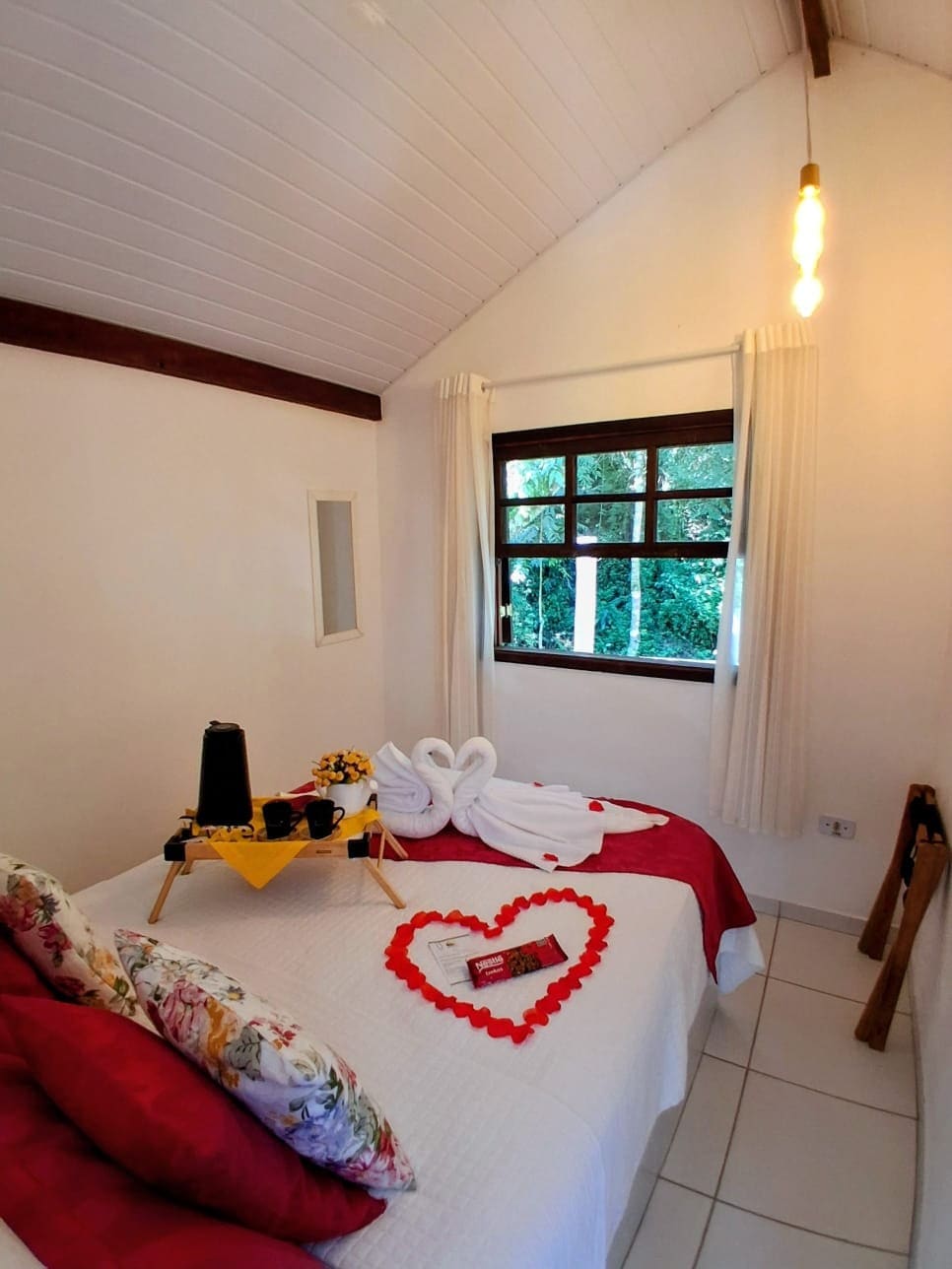 The Atibaia region, of which Jarinu is a part, is classified by UNESCO as having the 2nd best climate in the world. Closed (family) condominium, with mountain views surrounded by lots of greenery and with several leisure options. The Romantic Studio, measuring approximately 80 m2, is very charming, quiet and cozy! The Studio offers a private (heated) pool, balcony, Wi-Fi (100 mb), air-conditioning, TV (sky), fireplace, kitchen and bed and bath linens, blankets.