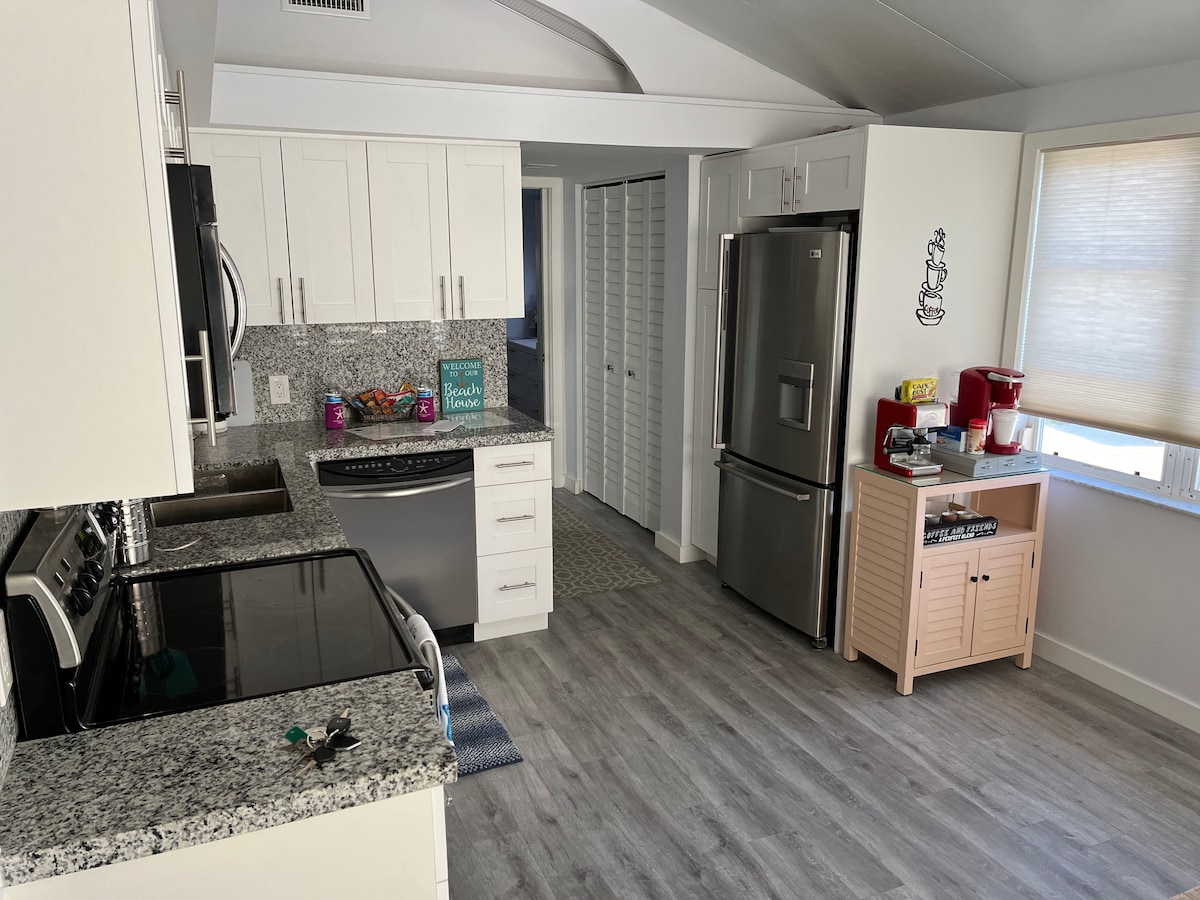 Kick back and relax in this calm, comfortable and inviting sun kissed coastal cottage. All the amenities in a stylishly decorated single family home that lies only one mile from the nearest coastal park and boat ramp to the intercostal waterway. Featuring a full kitchen, living space in & outdoor, 2 bedrooms with king beds. Bring your jet skis or small boats & when ready, be on the water in minutes. If you are here to relax & sunbath, take advantage of the privately fenced backyard.