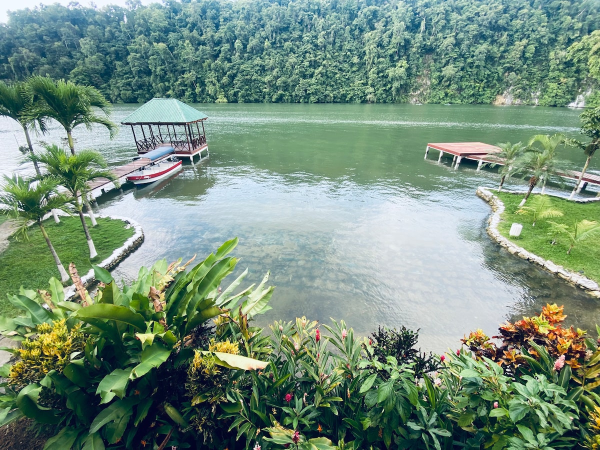 To enjoy as a family, a spectacular view of the Rio Dulce Canyon. 4 bedrooms each with a ensuite bath. The property has an outdoor area with hammocks, living room, Jacuzzi (with cold water). To enjoy with the family, a spectacular view of the Río Dulce Canyon. 4 bedrooms each with private bathroom. The property has an outdoor area with hammocks, lounge, jacuzzi (with cold water).